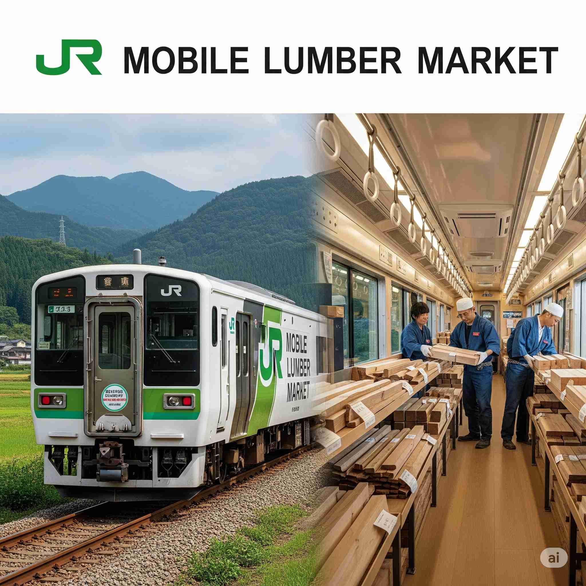 【お題】鉄道系企業と木材市場がコラボ。移動市場、その様子、予想図。