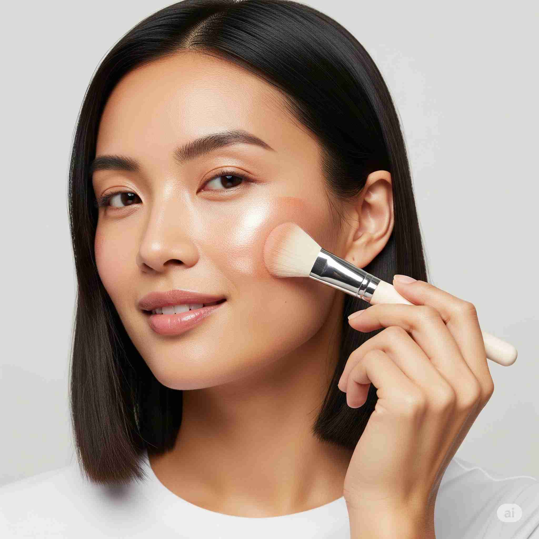 【お題】セルロースナノファイバーを利用した化粧品で化粧する女性