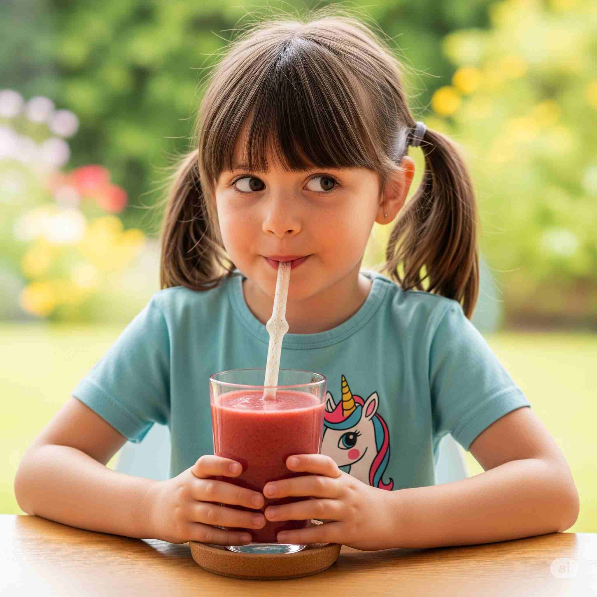 【お題】セルロースナノファイバーを用いたストローでドリンクを飲む少女