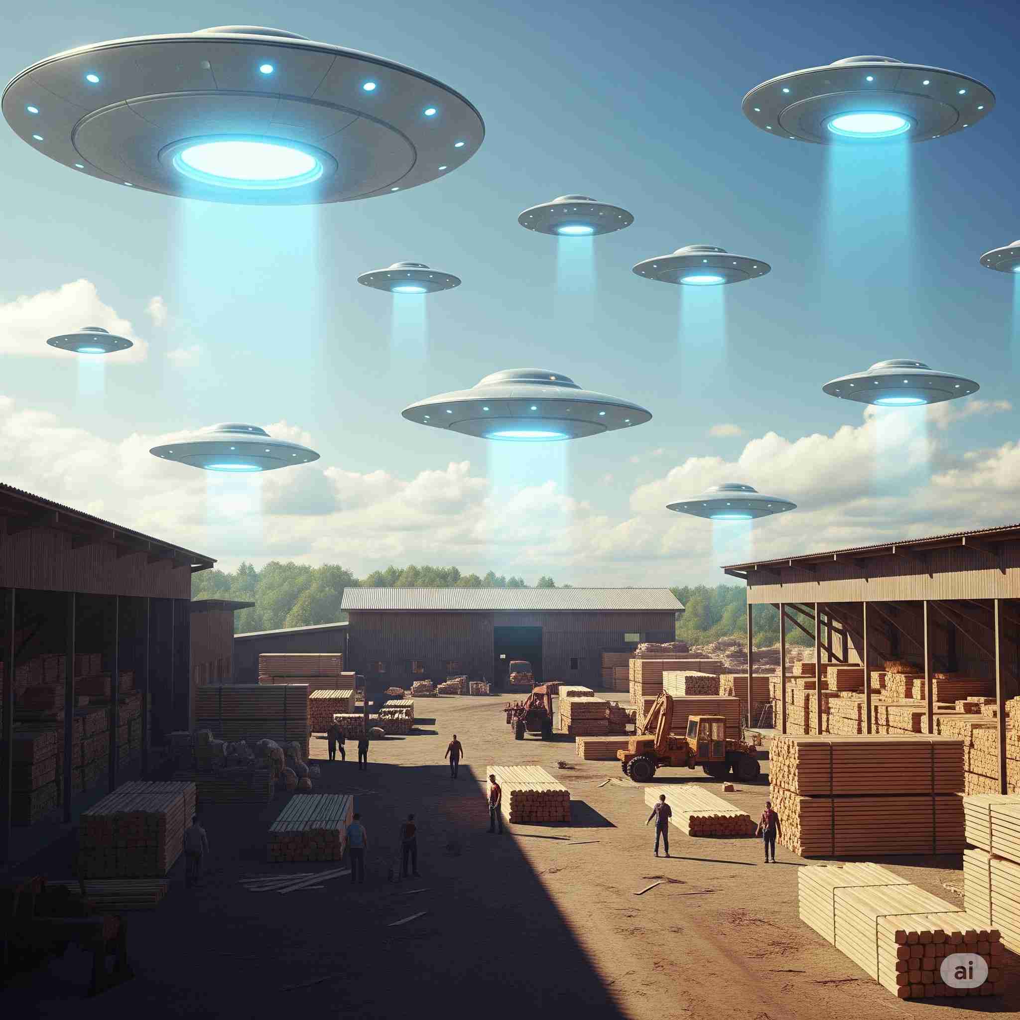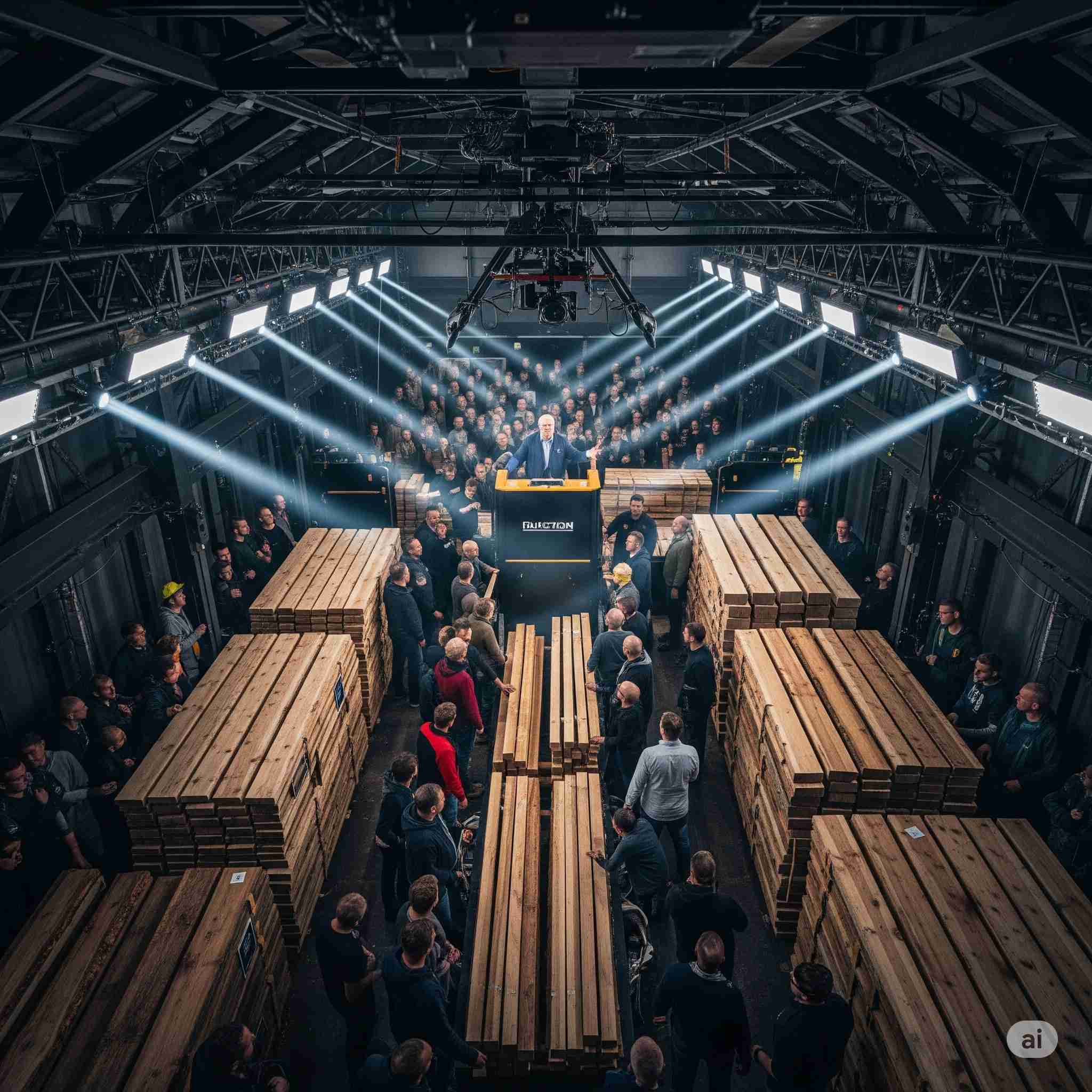 【お題】巨大なドローンの中で開催される移動型木材市場の競り