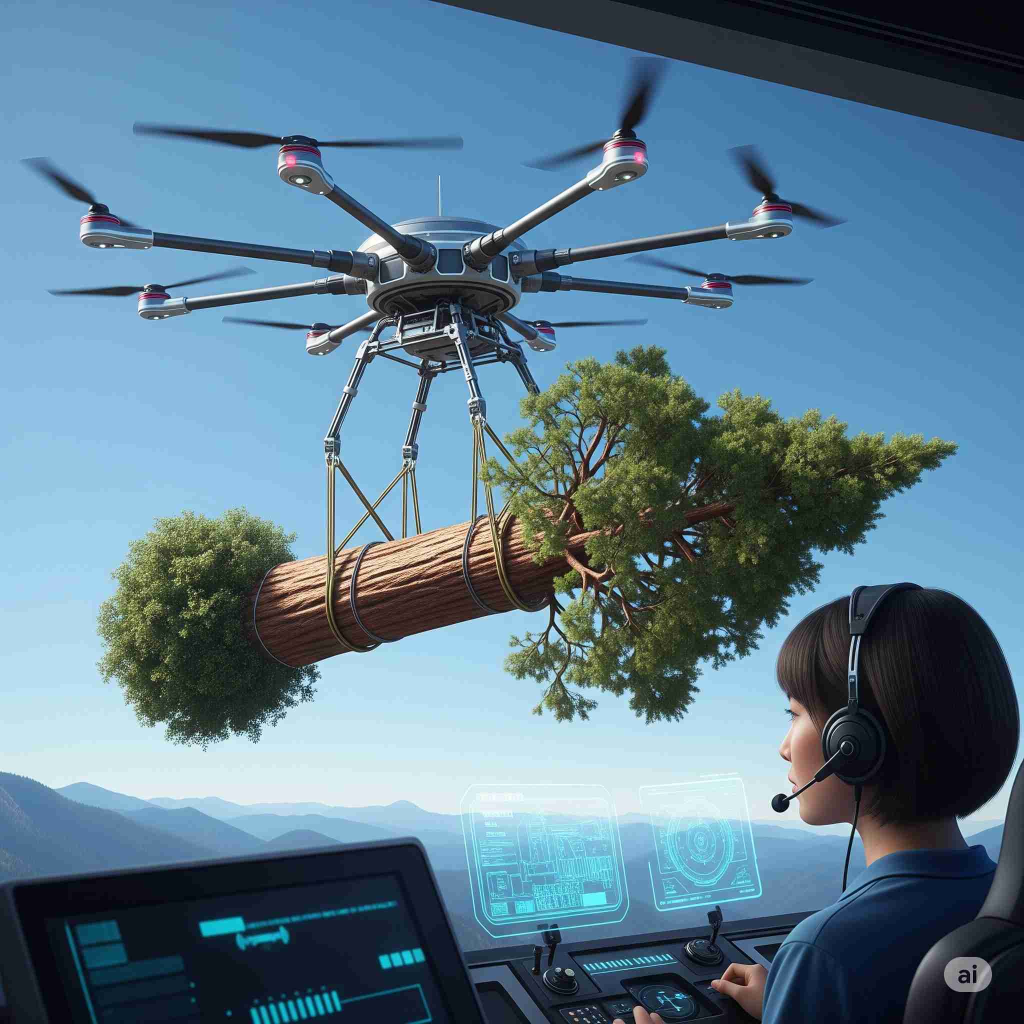 【お題】巨木を巨大なドローンで輸送する様子