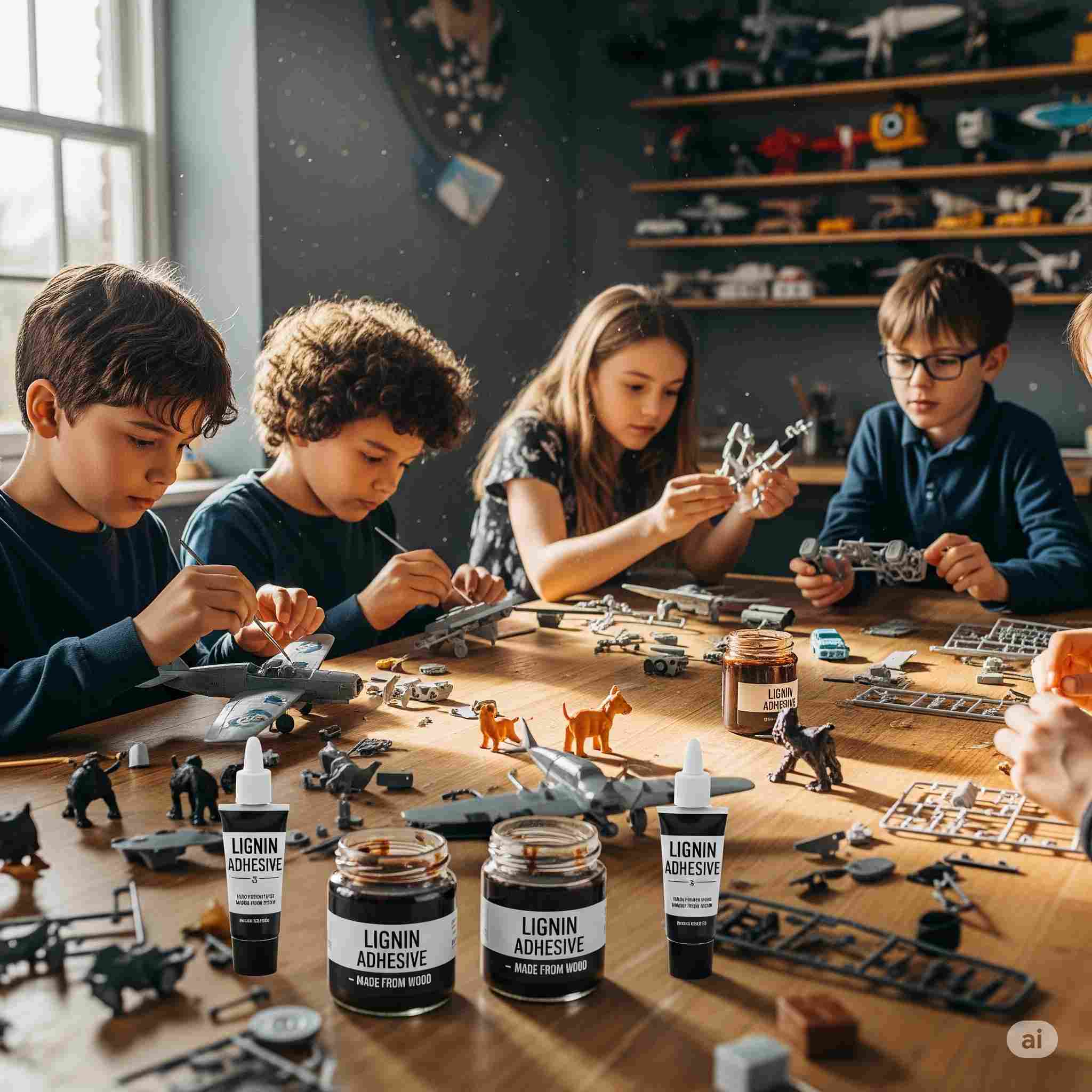 【お題】生成されたリグニン接着剤でプラモデルを作る子ども達