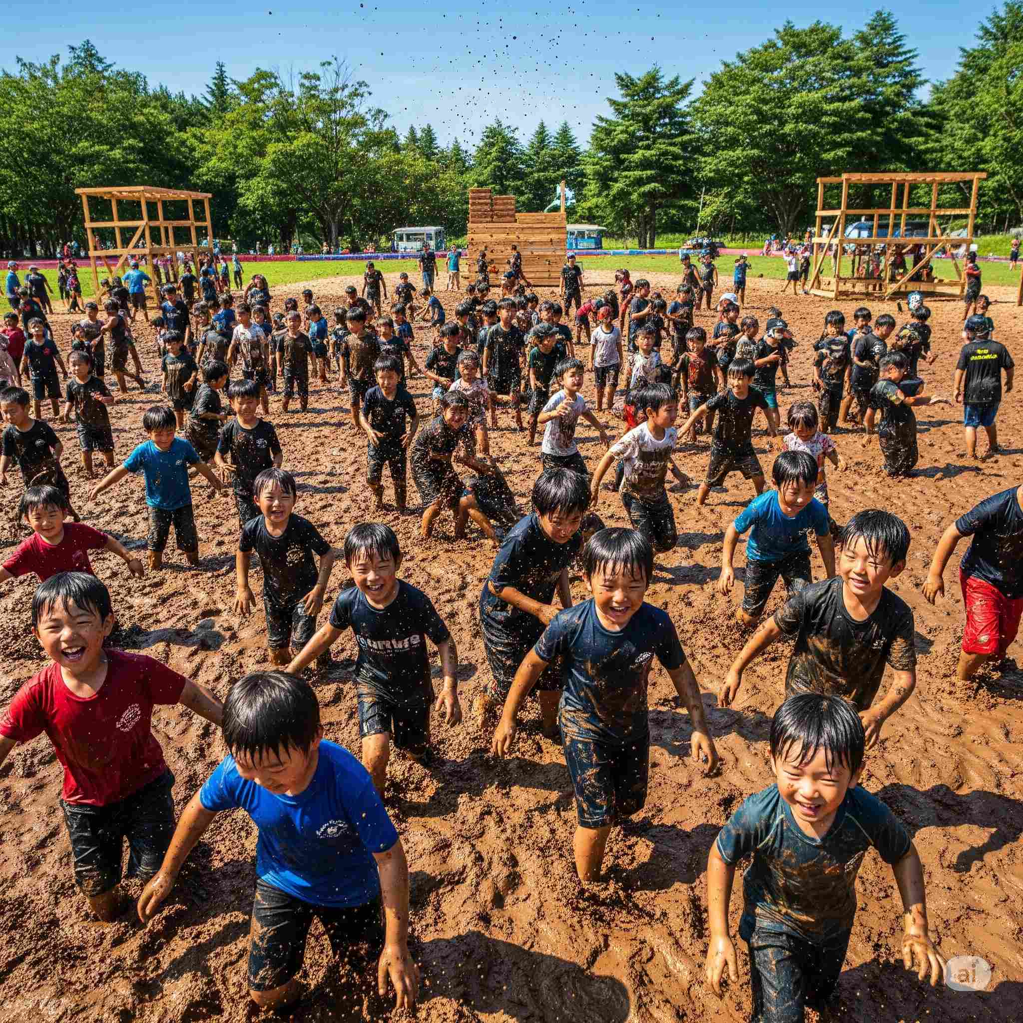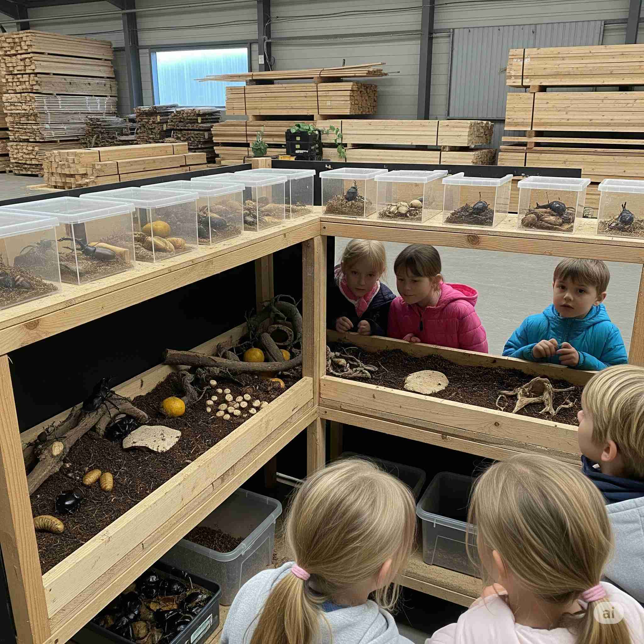 【お題】木材市場の一角で子ども達が集まるクワガタとカブトムシの飼育場