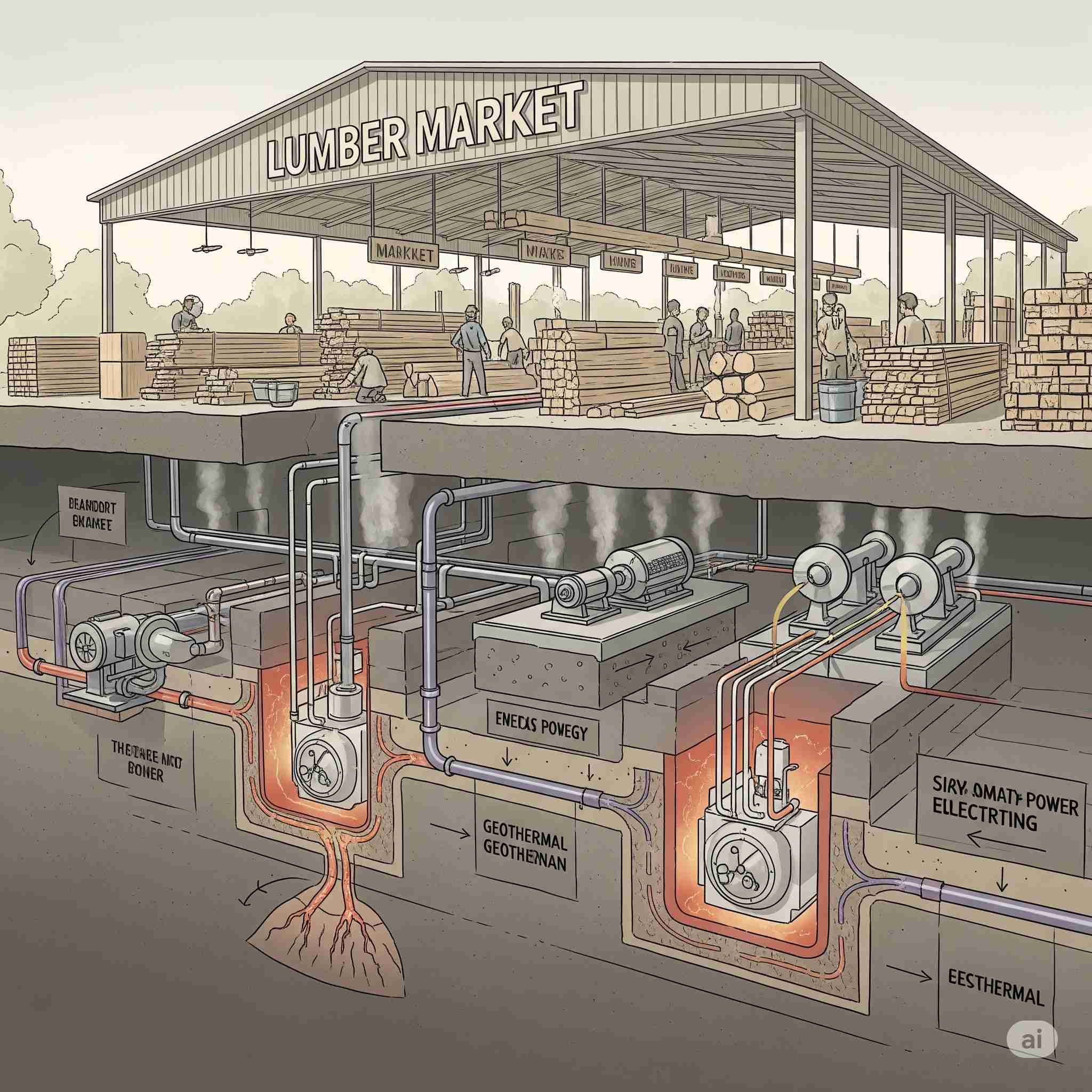 【お題】木材市場の地下を利用した地熱発電