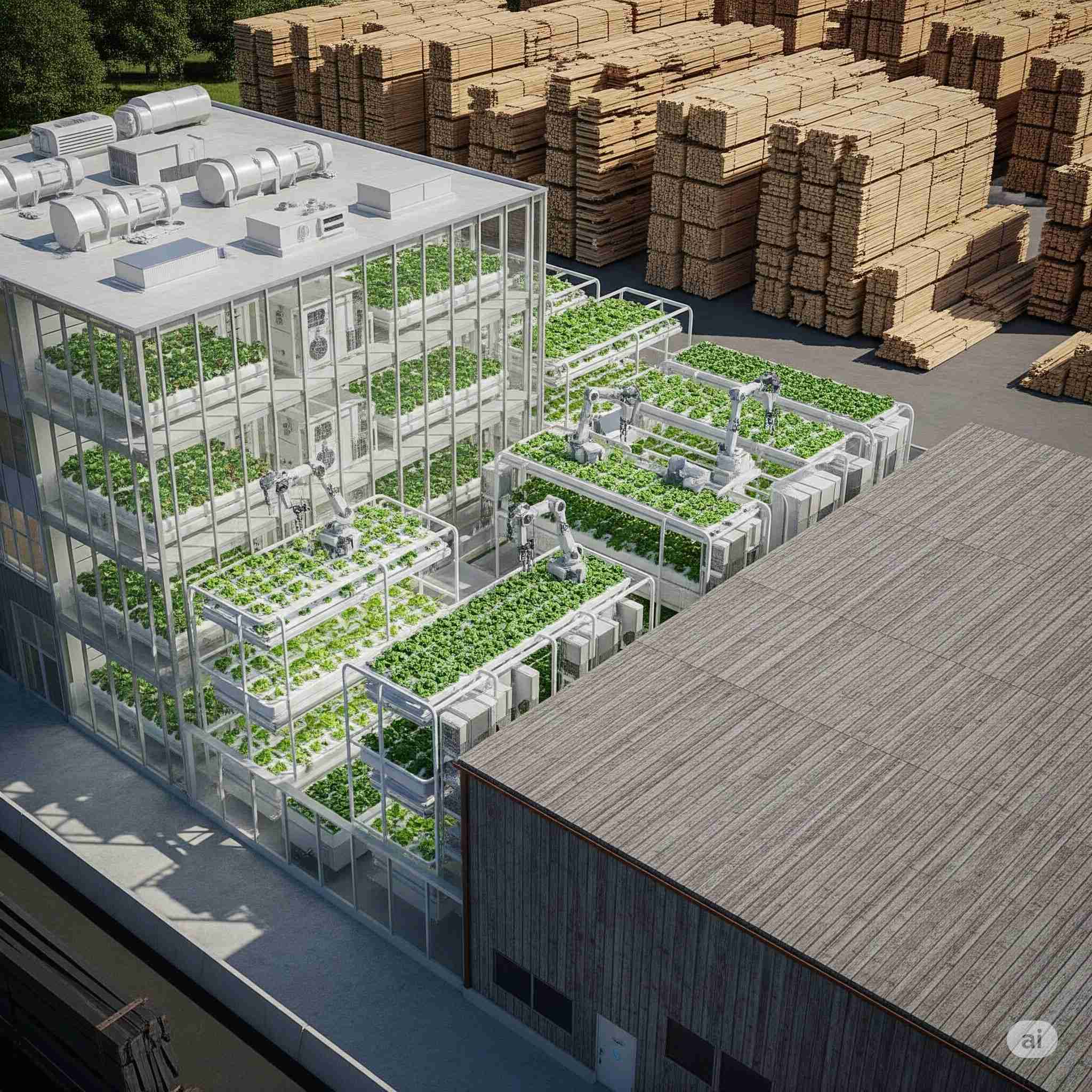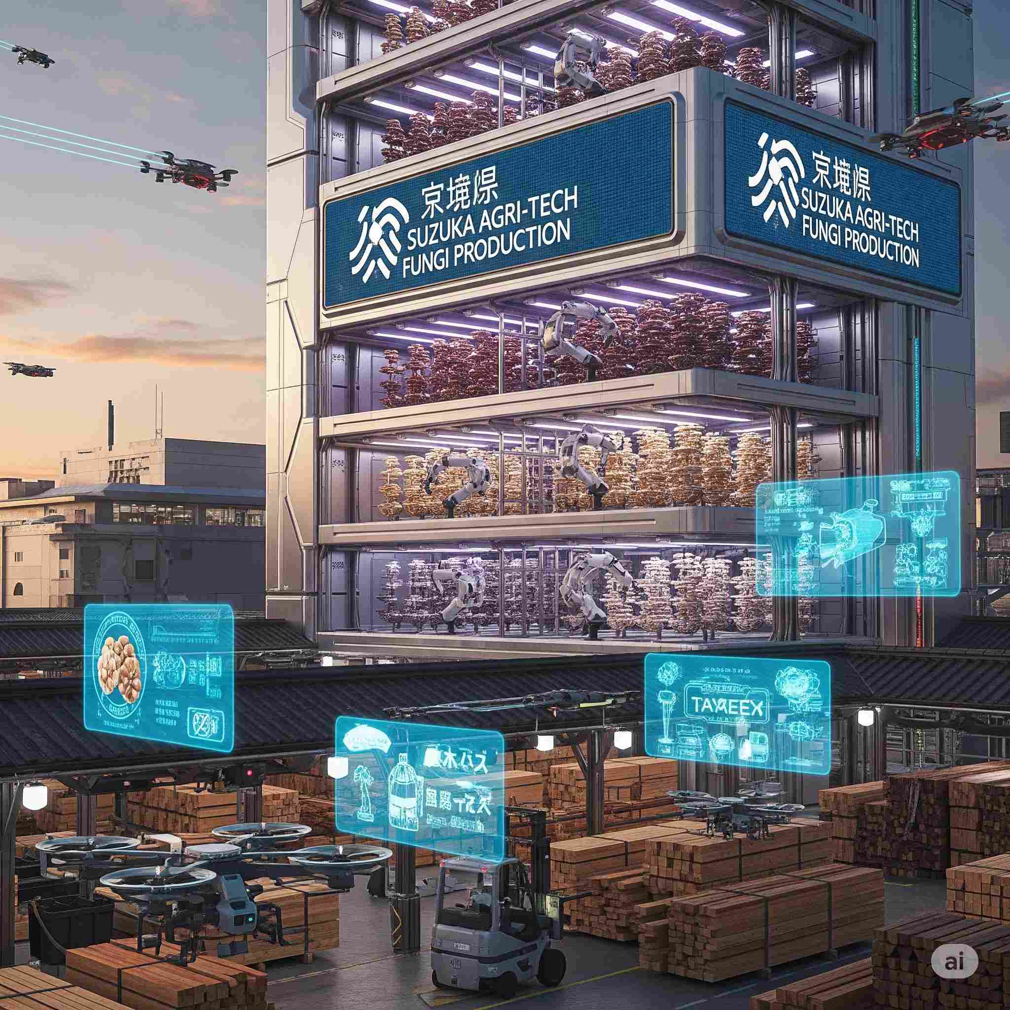 【お題】木材市場の横で活躍する食用キノコなどの食物工場