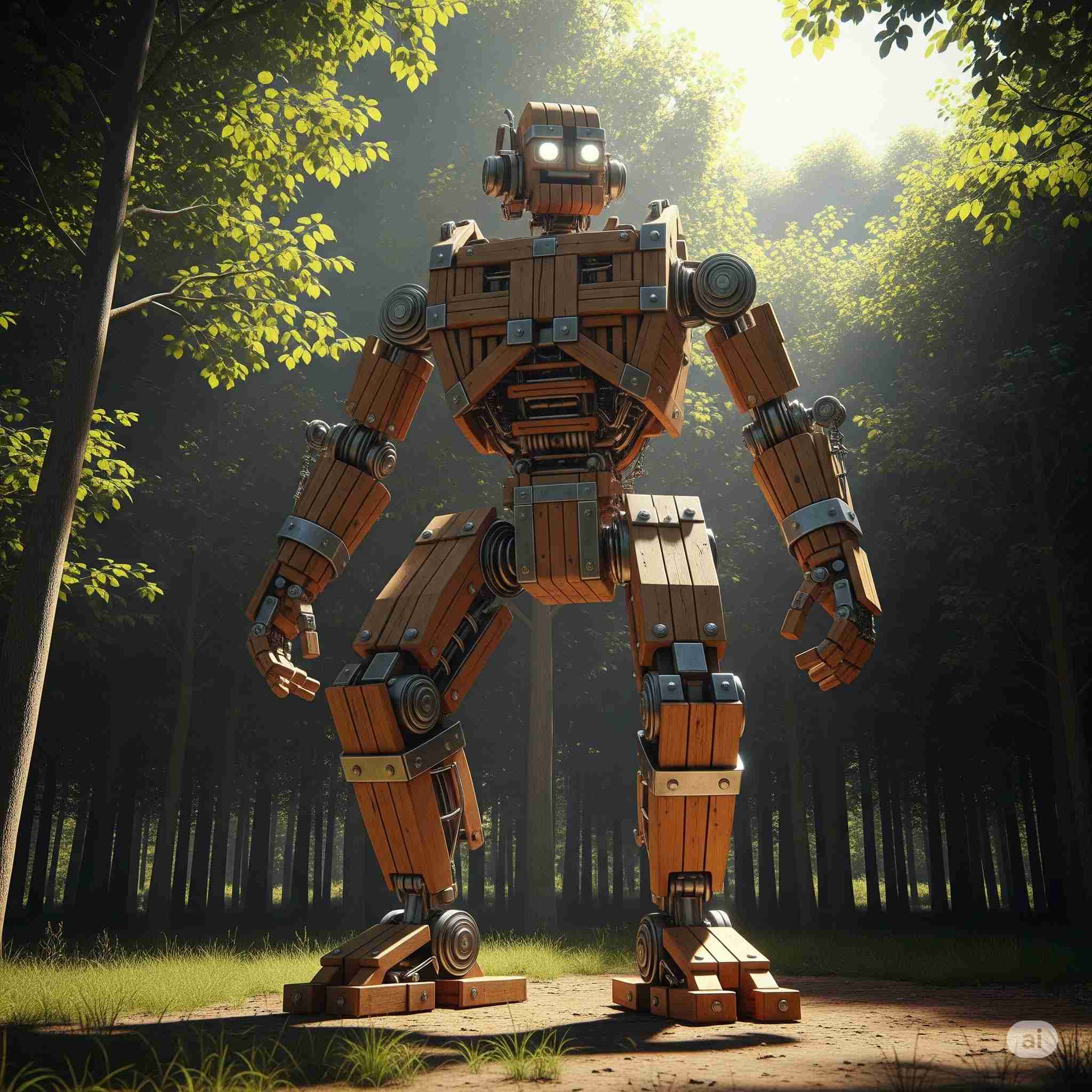 【お題】ドローンとAIロボットが合体し森林を伐採、その様子