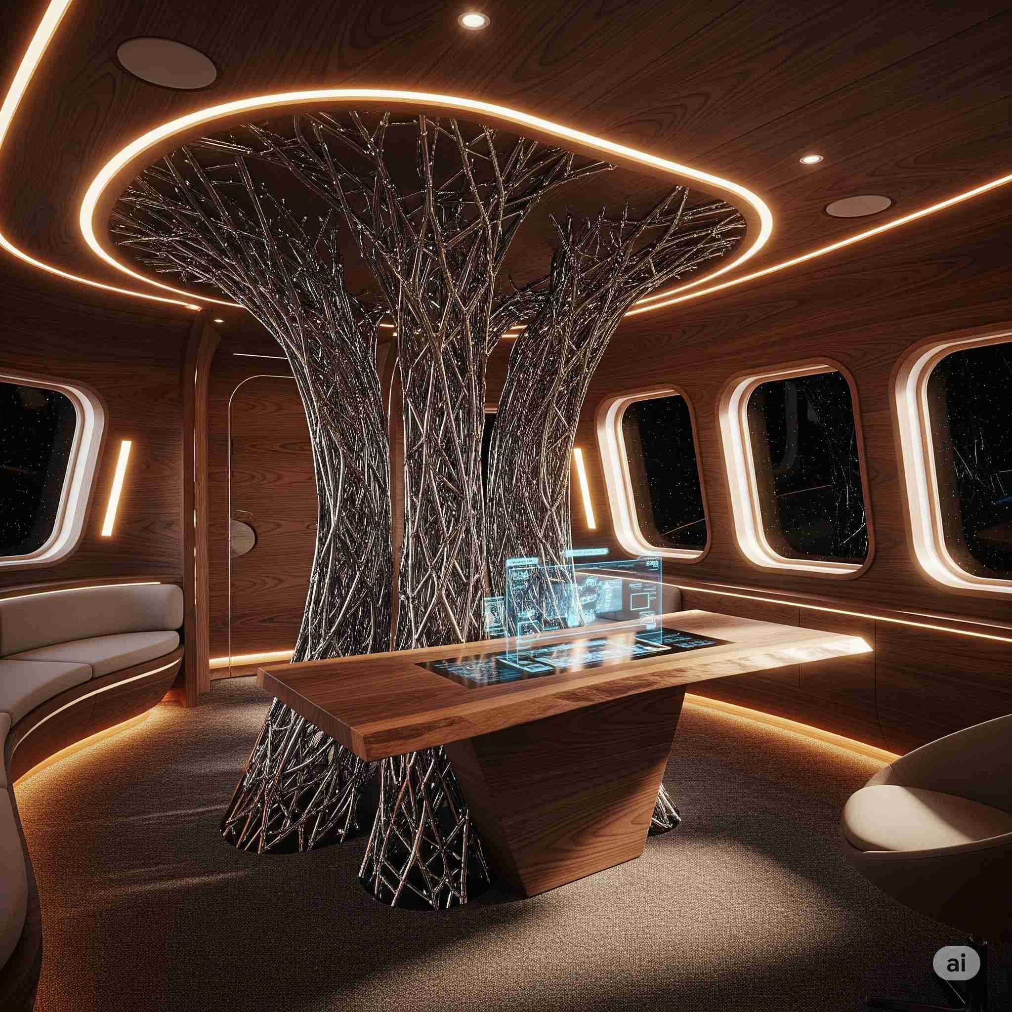 【お題】楢の木とカーボンナノチューブで作られた宇宙船の個室、その様子