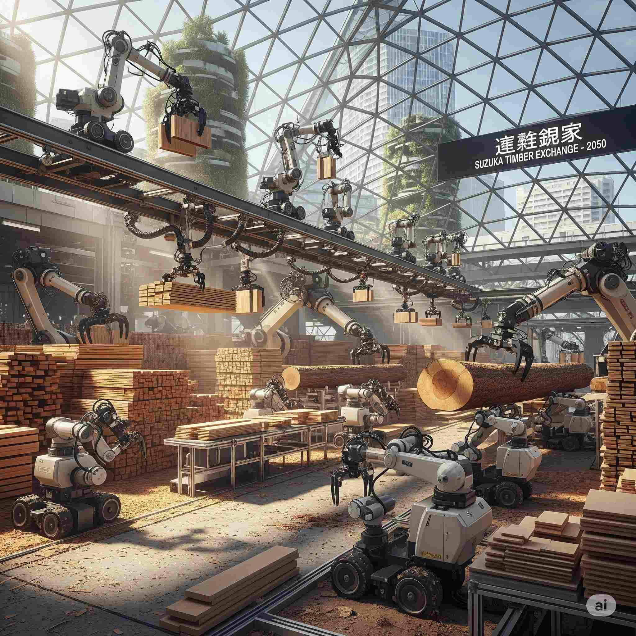 【お題】西暦2050年、鈴鹿の木材市場にて活躍する小型ロボットアーム