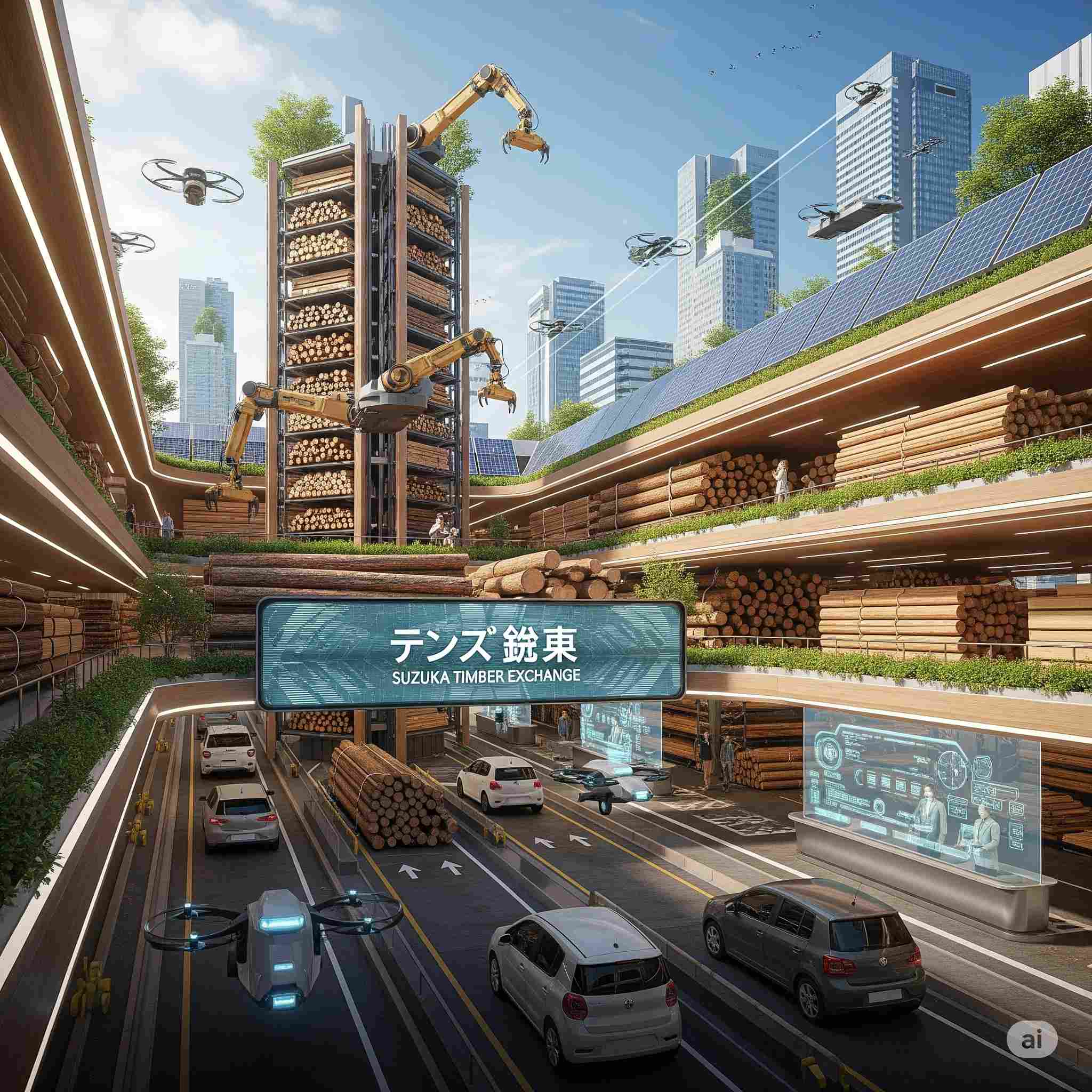 【お題】西暦2100年、ドライブスルー形式で運営されている鈴鹿市の木材市場