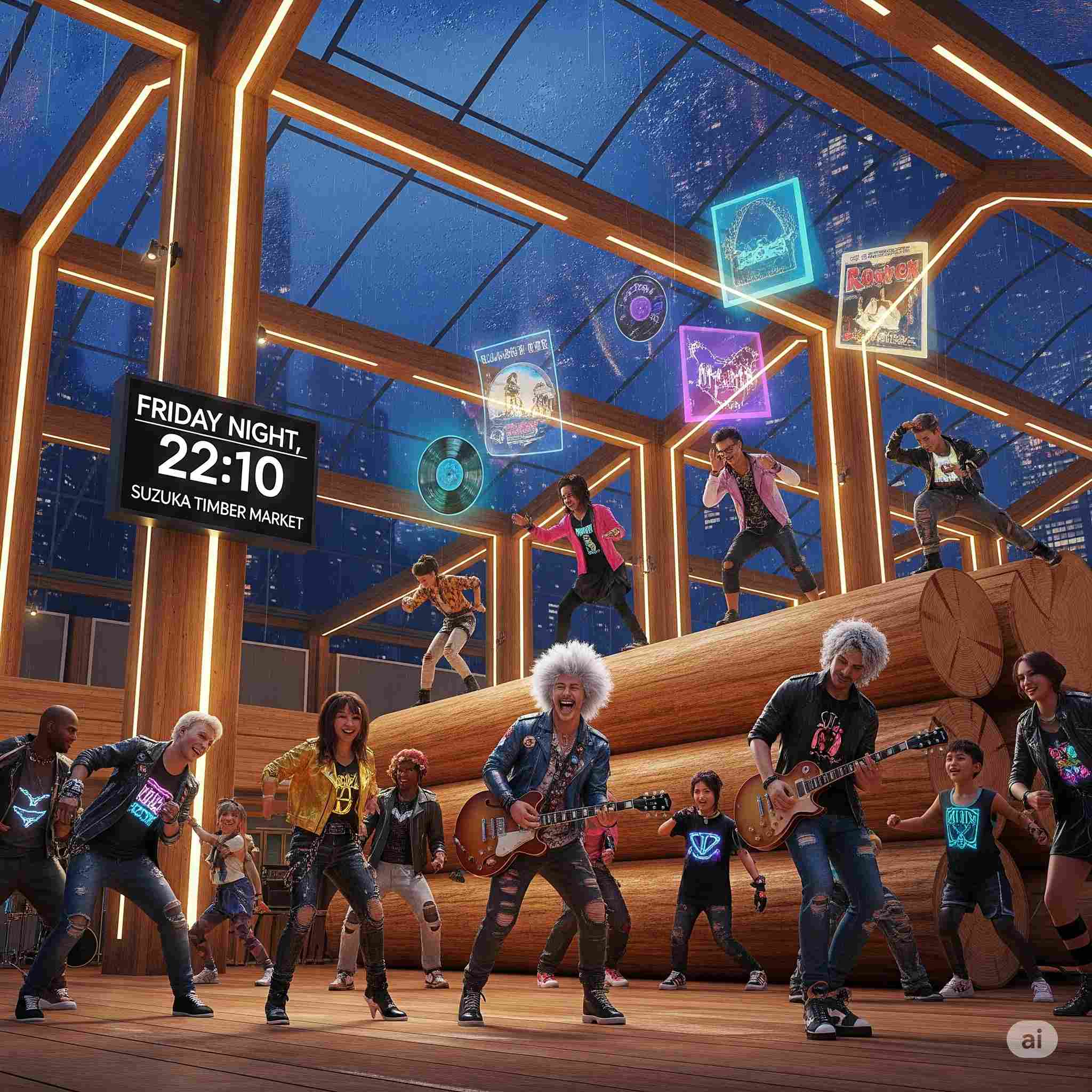 【お題】西暦2105年、鈴鹿の木材市場にて開催されている、地域住民とのふれ合いグループサウンズ音楽会