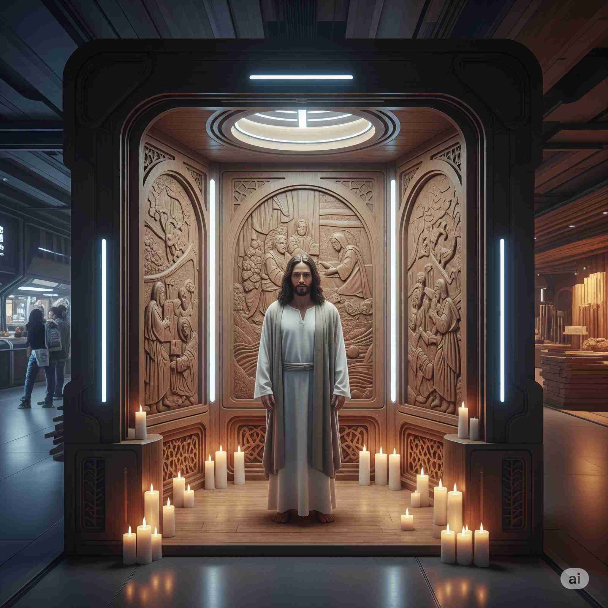 【お題】西暦2380年、イエスキリストの様な方が蘇り、木材市場の一角に作られたインバウンド客向けの礼拝室(観光名所に)