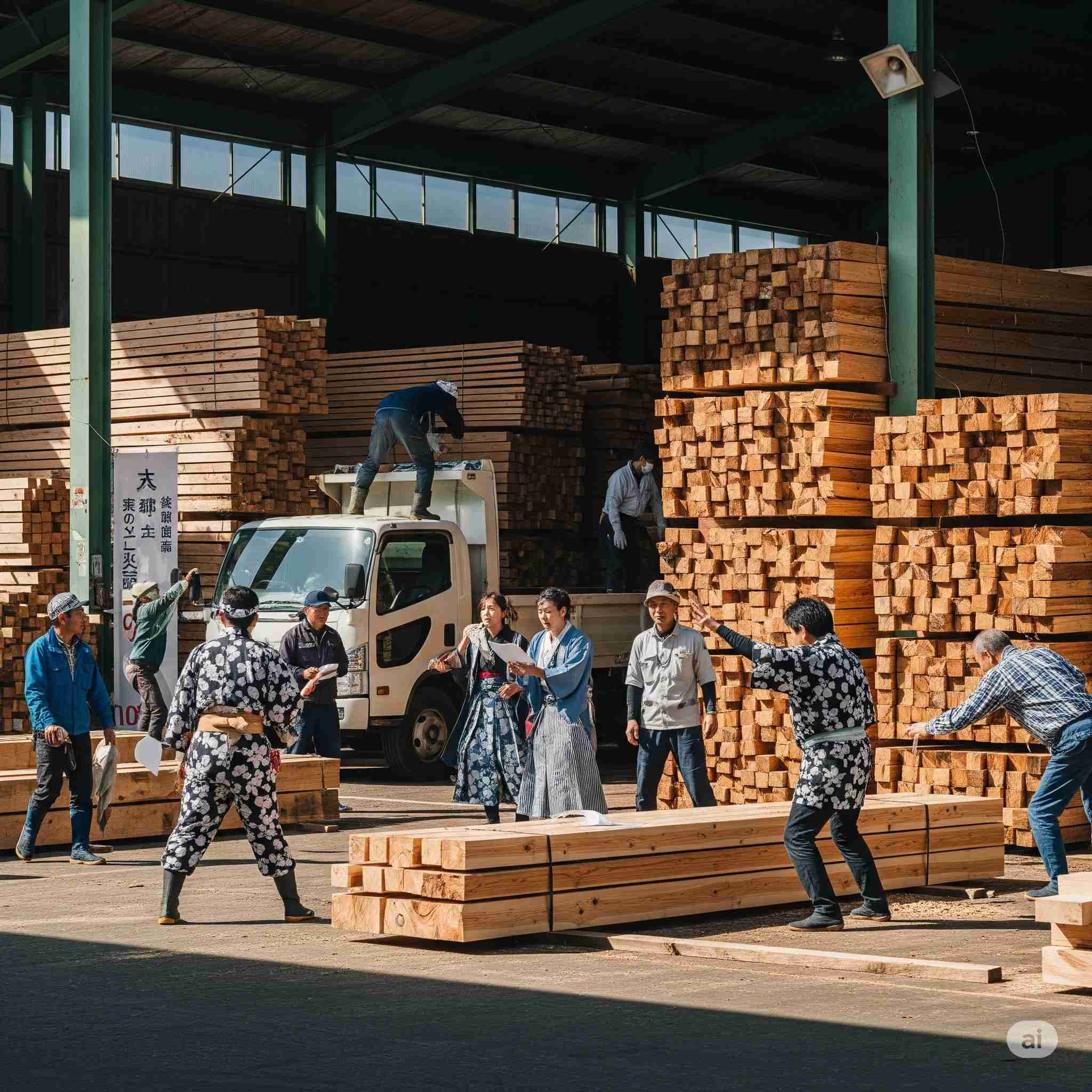 この項目は木材、材木、木材市場等関連のAI生成画像集です。