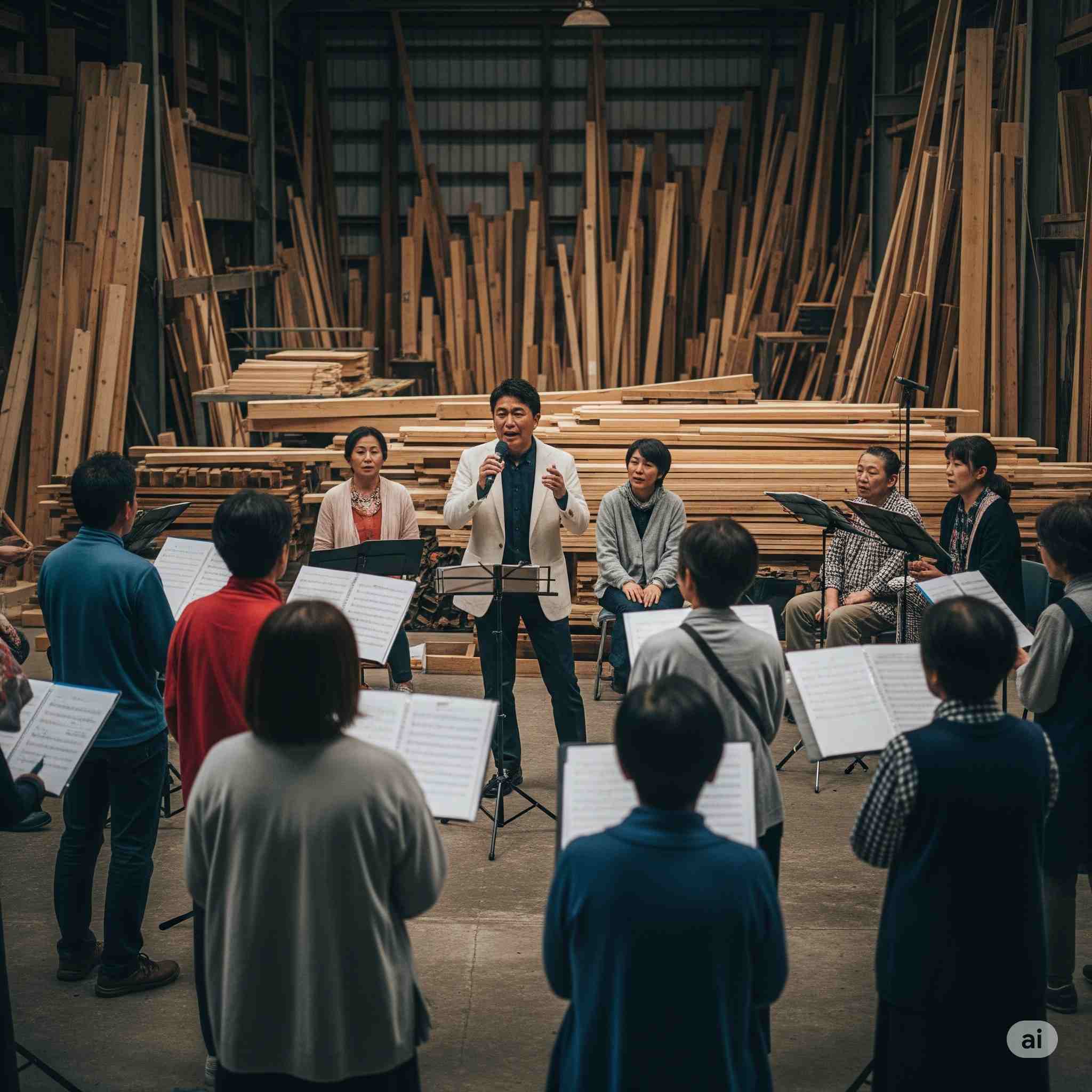 【お題】西暦2080年、鈴鹿市の木材市場にて金曜の夜に開催されている親睦フォークソング大会