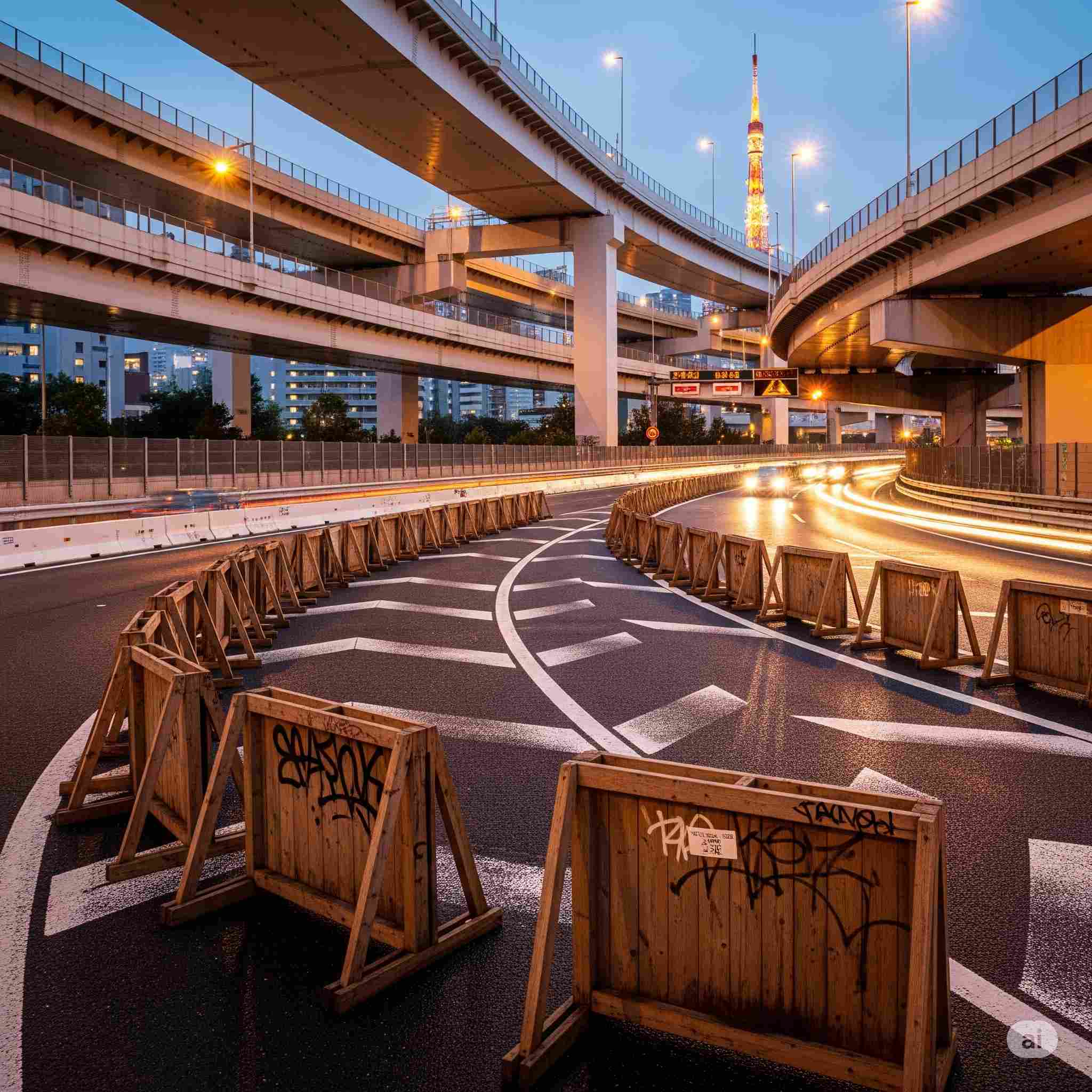 【お題】首都高速のルーレット族対策に作られた木製のバリケード、その様子